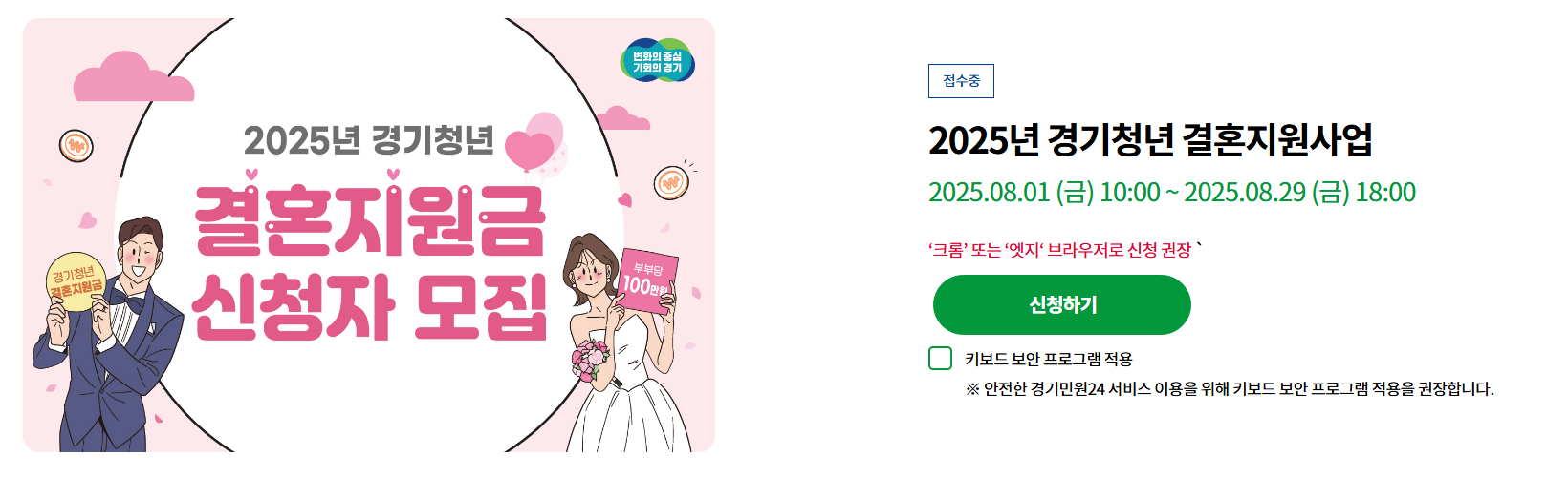 2025년 경기청년 결혼지원금, 지금 신청 가능합니다!