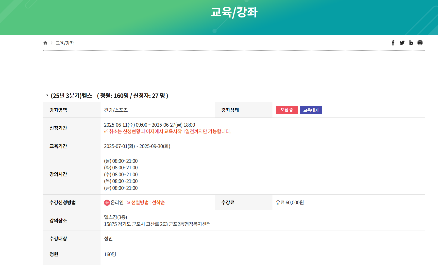 이럴 때 군포주민자치센터에서 직접 운영하는 군포 평생학습원 헬스장은 당동 주민들에게 합리적인 대안이 됩니다.