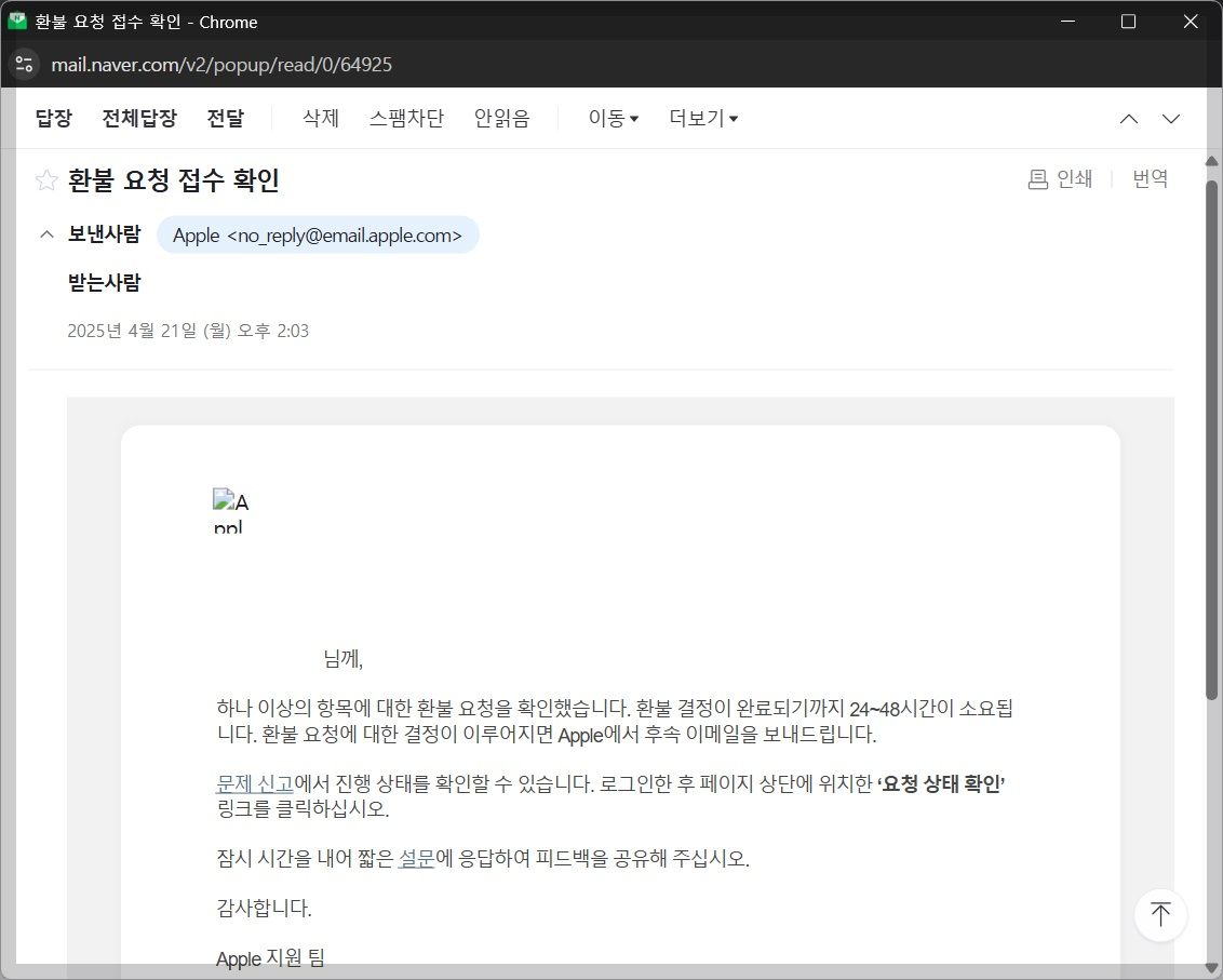 단, 구매 후 14일 이내여야 하며, 환불 여부는 애플 정책에 따라 결정됩니다.