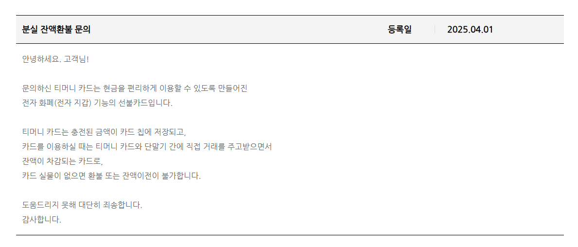 티머니카드 분실 환불, 정말 안 되는 걸까? 고객센터에서 직접 받은 답변은 이렇습니다