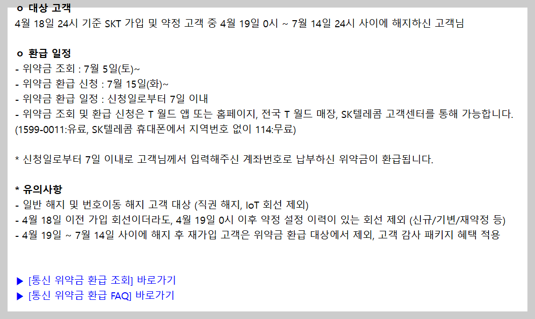 👉 SKT 위약금 환급 조회 바로가기